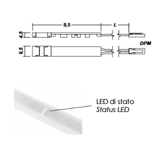 Interruttore touch 2 poli, dimmerabile, per profilo lampada. Con led di stato.